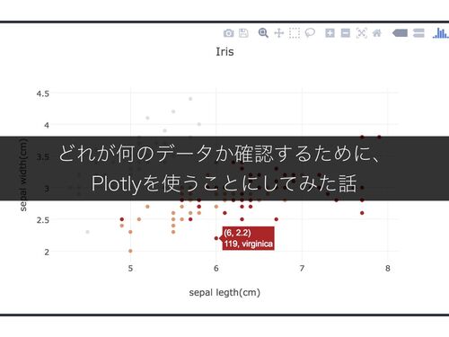 つまりなにしたの? Matplotlibを使っていたら、量が多いとScatterでプロットしたものの、どれがどのデータなのかわからなくなって困っていた。 そこで、インタラクティブなプロットができるPlotlyを使ってみることにした。