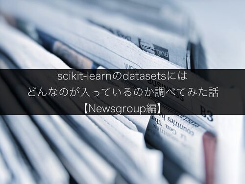 つまりなにしたの? Blogでサンプルを使いつつ、処理方法を紹介する時に便利なscikit-learnのdatasetsにはどんなのが入っているのか まとめておこうと思ってまとめ始めた。今回はNewsgroupのテキストデータ。